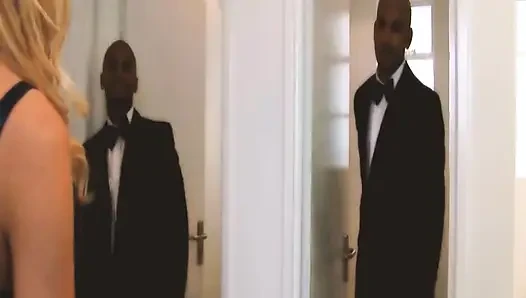 Уютная сцена друзей - 3_busty милфа-блондинка в нижнем белье наслаждается двойным камшотом на лицо в межрасовом тройничке